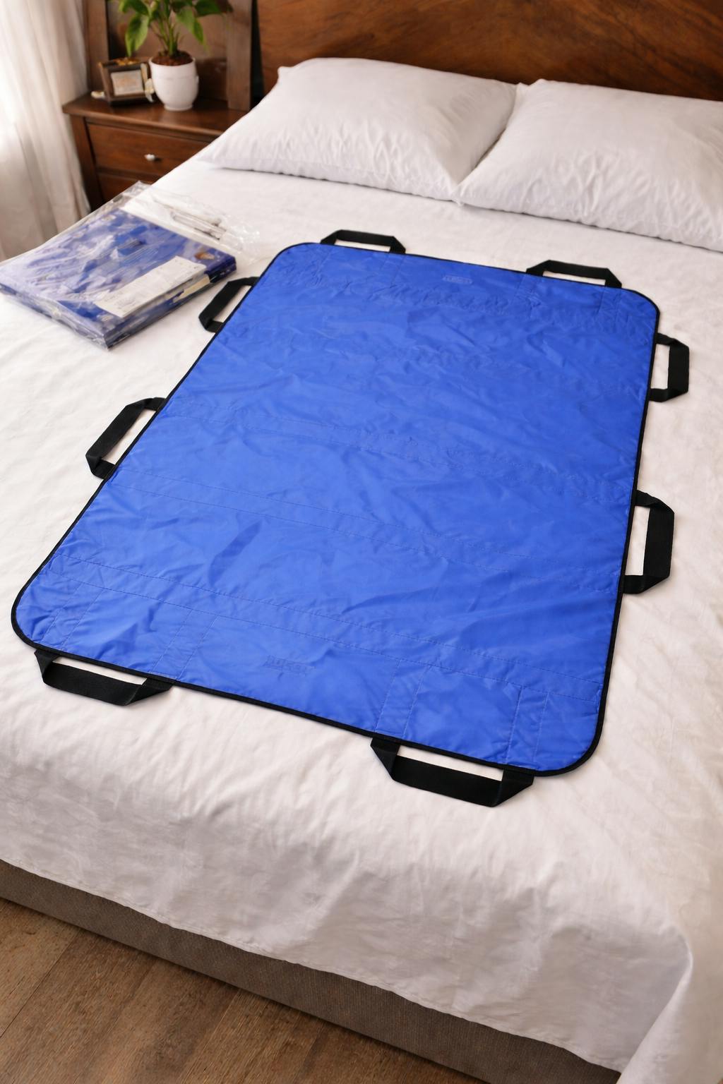 By allowing patients to be repositioned through controlled sliding rather than lifting, the bed pad helps keep the spine aligned and distributes weight evenly, reducing strain and lowering the risk of long-term back pain.